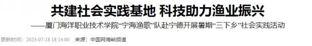 中国网福建讯 7月12日,厦门海洋职业技术学院“宁海渔歌”队赴宁德市漳湾镇、三都镇等地,开展为期6天的暑期“三下乡”社会实践活动。作为2023年“三下乡”社会实践活动之乡村振兴“笃行计划”专项行动全国示范性团队,此次“宁海渔歌”队的实践活动以“聚力青春,海洋强国”为主题,围绕三都澳海域,在感悟福船文化、科技兴海、教育下乡之路上,引领航海学子厚植爱农情怀,投身乡村振兴,建设海洋强国。