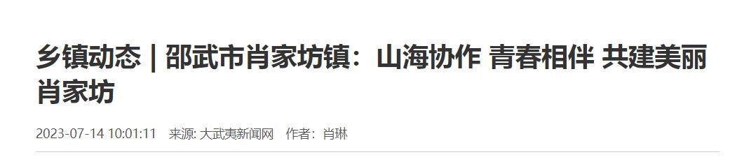今年以来,肖家坊镇政府依托邵武市吉宝原中医药文化实践康养基地和天成奇峡景区赋能,引领厦门海洋职业技术学院海洋文化与旅游学院的学生们参与基层治理,探索出“组织化动员、社会化参与、体系化赋能”的青年群体参与基层社会治理的“肖家坊模式”,为乡村发展汇聚着强大青春力量。