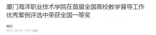 厦门海洋职业技术学院在首届全国高校教学督导工作优秀案例评选中荣获全国一等奖