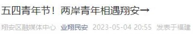 未来,翔安区将继续为两岸青年搭建沟通交流、互学互鉴的平台,进一步加强引领凝聚两岸青年,构建台湾青年发展友好型城区,增进两岸的情感互通与交流,为扩大深化两岸融合发展贡献翔安力量!