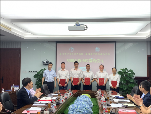 中国质量新闻网讯 近日,厦门市计量检定测试院与厦门海洋职业技术学院合作共建活动在海洋学院翔安校区举行,厦门市市场监管局计量处处长孙添乙、厦门市计量院院长蒋淑恋、海洋学院校长陈昌萍等出席了本次活动。