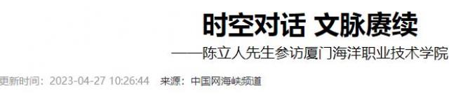中国网福建讯 4月26日上午,陈嘉庚先生长孙陈立人先生参访厦门海洋职业技术学院,沿着嘉庚先生创办水产航海的兴学之路,开启了一场跨越百年的兴海强国对话。