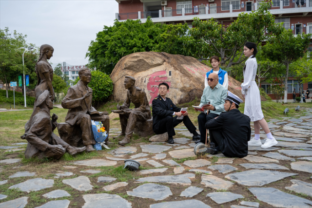 《嘉庚讲学》铜雕群像旁开启时空对话