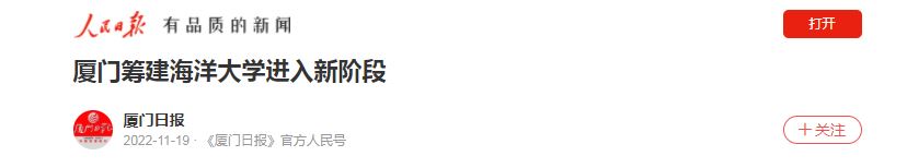 这也标志着厦门的海洋大学建设进入新的筹建阶段。在厦门筹建海洋大学已写入厦门市第十三次党代会报告及福建省、厦门市海洋经济、教育等领域多项“十四五”规划。新大学名字还没有确定。