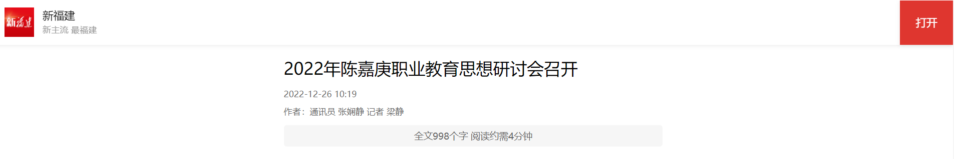 海峡导报新福建客户端12月26日讯(通讯员 张娴静 记者 梁静)12月23日,2022年陈嘉庚职业教育思想研讨会在厦门海洋职业技术学院召开。本次研讨会由厦门市委统战部指导,由厦门海洋职业技术学院联合厦门市中华职业教育社、厦门陈嘉庚研究会共同主办,厦门海洋职业技术学院陈嘉庚教育研究中心承办。