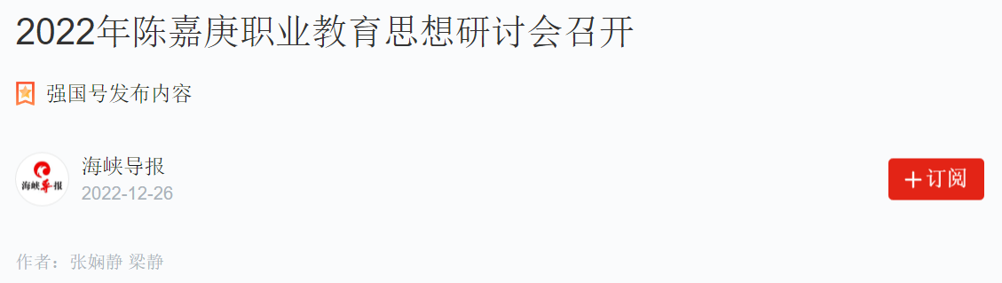 12月23日,2022年陈嘉庚职业教育思想研讨会在厦门海洋职业技术学院召开。本次研讨会由厦门市委统战部指导,由厦门海洋职业技术学院联合厦门市中华职业教育社、厦门陈嘉庚研究会共同主办,厦门海洋职业技术学院陈嘉庚教育研究中心承办。