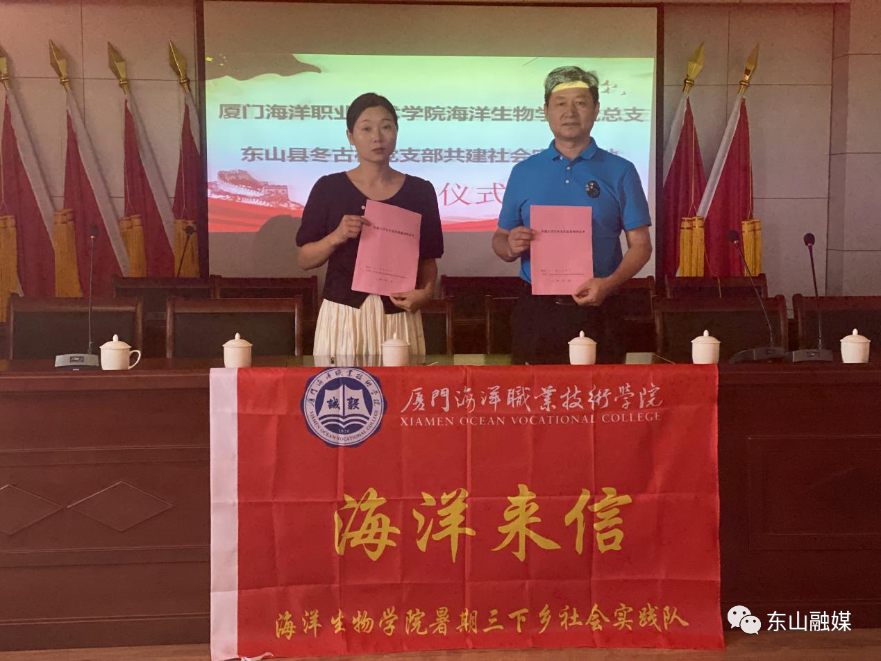 厦门海洋职业技术学院海洋生物学院党总支部还与西埔镇冬古村党总支部签订了社会实践共建协议,为养殖户赠送智慧养殖设备、海洋科普图书及乡村振兴纪念品。