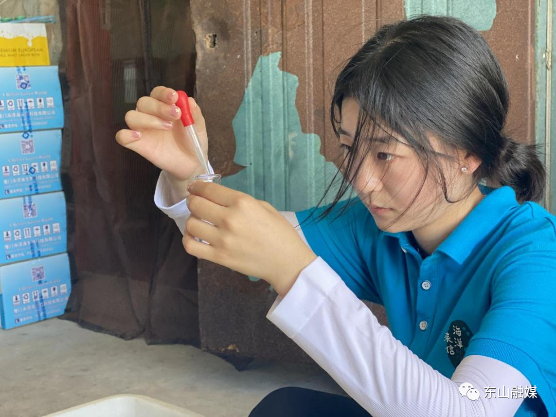 实践团队实地走访了东山县近10家水产养殖企业,对现代水产养殖技术应用和养殖户收入情况进行调研,实践团队成员帮助养殖户投喂饵料,对养殖水域的PH值、硬度、碱度、溶氧等水质指标进行了检测,用所学的养殖技术帮助养殖户解决问题。