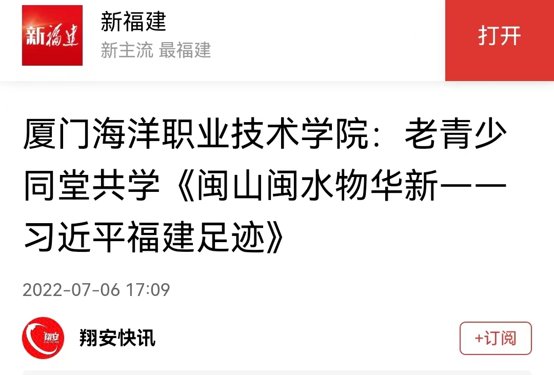 7月1日上午,厦门海洋职业技术学院退休教师、“光荣在党50年纪念章”获得者阮基成到校,与全体新入职辅导员、青马工程学员同堂学习《闽山闽水物华新——习近平福建足迹》。现场氛围温馨感人,老青少同堂沿着“习近平福建足迹”,深度学习“大厦之门开大些”“多和大海打交道”篇章。
