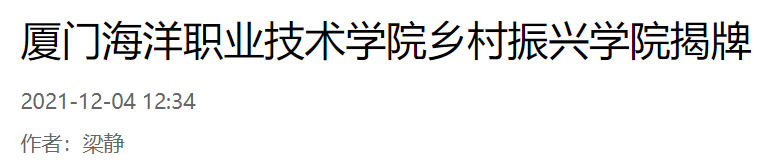 校方说,成立乡村振兴学院,是进一步服务国家乡村振兴战略的重要举措,是加快落实省委、市委“筹建海洋职业大学”的具体行动。