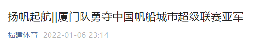 2021年12月29日-2022年1月1日,中国帆船城市超级联赛总决赛在无锡举行,厦门海洋学院帆船队代表厦门市参赛,以预赛成绩第一名进入半决赛,在半决赛中表现出色,以2:0战胜衢州队进入冠亚军争夺战,最终夺得亚军