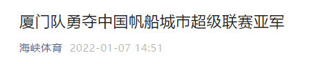 2021年12月29日-2022年1月1日,中国帆船城市超级联赛总决赛在无锡举行,厦门海洋学院帆船队代表厦门市参赛,以预赛成绩第一名进入半决赛,在半决赛中表现出色,以2:0战胜衢州队进入冠亚军争夺战,最终夺得亚军。