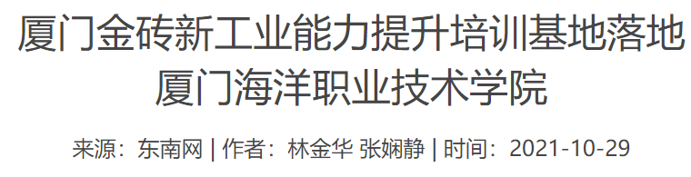 东南网10月29日讯(通讯员 林金华 张娴静)日前,金砖创新基地举行“厦门金砖新工业能力提升培训基地联盟”授牌仪式,厦门海洋职业技术学院成为首批获授牌成员单位之一。10月29日,该校举办“厦门金砖新工业能力提升培训基地”(以下简称“培训基地”)揭牌仪式。