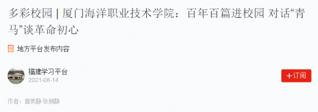 近日,“学习强国”厦门学习平台、厦门经济交通广播联合主办“百年百篇”主播讲厦门党史活动走进厦门海洋职业技术学院,为学校“青年马克思主义者培养工程”培训班同学们带来一场“声”入人心的红色洗礼。