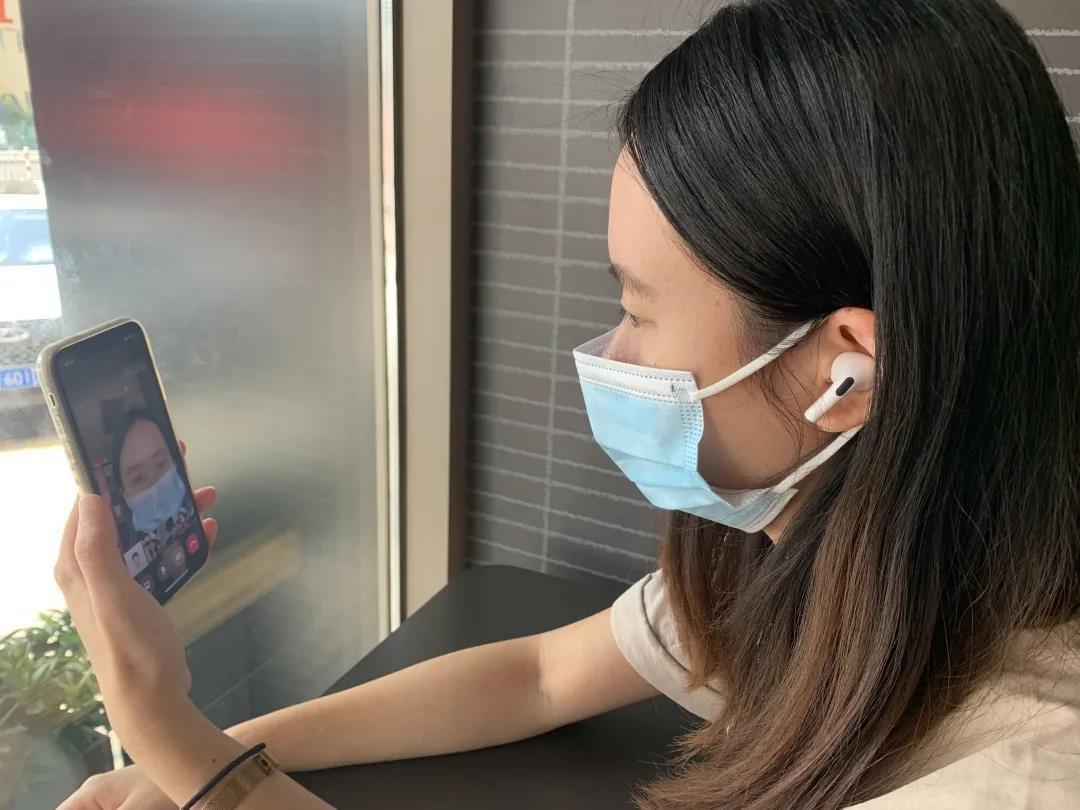 学生志愿者与隔离同学谈心。厦门海洋职业技术学院供图