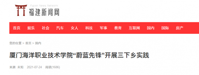 7月22日至23日,厦门海洋职业技术学院航海学院“蔚蓝先锋”暑期三下乡实践队在傅文君、王彬清等老师的带领下,赴翔安开展“守蓝色初心,筑强国之路”国情社情观察实践活动。