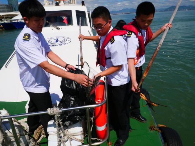 次日,实践队赴五缘湾游艇码头,乘坐海巡艇前往厦门东部水域清理海上漂浮垃圾,队员们身体力行,将海上的漂浮物一一打捞上来,深感:治污工作的艰辛与海洋污染防治的重要性。队员们还通过现场直播的方式,呼吁大家保护海洋生态环境,从小事做起,用实际行动呵护海洋清洁,为海洋生态文明贡献一己之力。