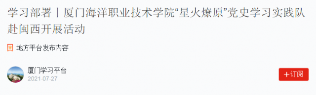 7月15日至7月18日,厦门海洋职业技术学院“星火燎原”党史学习实践队赴龙岩市多个县区开展暑期“三下乡”社会实践活动。