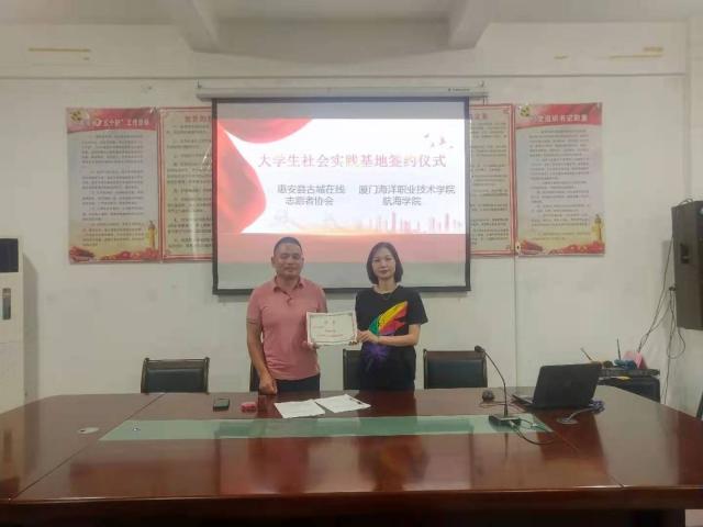 第四日,秉承着“奉献,友爱,互助,进步”的中国青年志愿者精神,实践队来到前垵村委会,代表厦门海洋职业技术学院与惠安县古城在线志愿者协会签订了大学生实践基地合作协议。签约后双方立即携手开展“创建文明城市”系列志愿服务活动。凝聚青春力量,建设美好家园,真正践行“绿水青山就是金山银山”的发展理念。