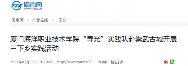 2021年7月22日-25日,厦门海洋职业技术学院航海学院“寻光”暑假三下乡实践队赴崇武古城开展“沿红色之旅,寻志愿之光”的社会实践活动。
