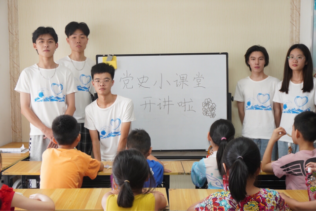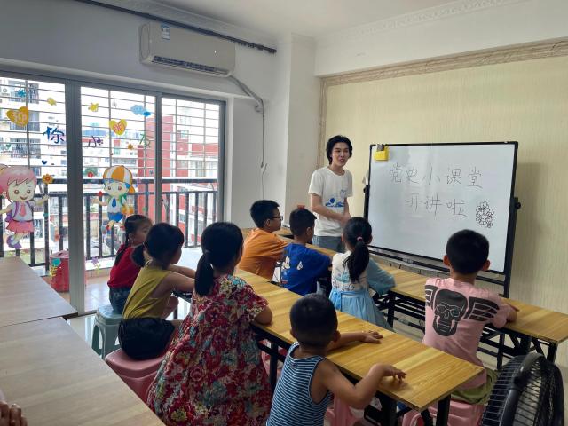 最后一站,“海之蓝心系乡”暑期三下乡实践队,组织社区的托管儿童开展了“党史知识进社区,关心关爱儿童”活动。社区托管儿童共有学生18名,通过与社区托管负责的老师沟通交流,与孩子们的初步认识,队员们在出发前开会讨论与备课,模拟互动答问环节,在16日到现场后,陆续开展了爱国教育、垃圾分类、心理辅导等理论和实践课程。