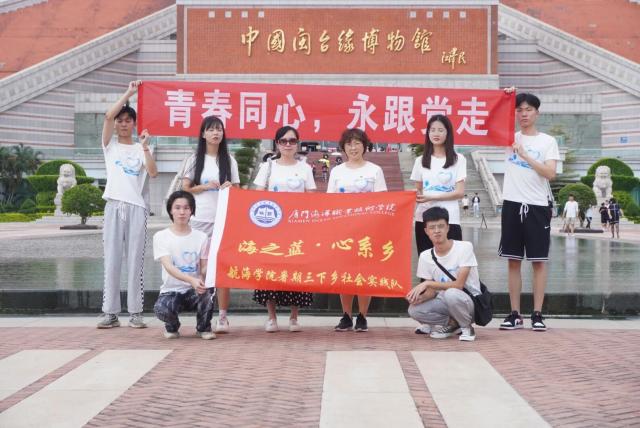 2021年7月15日一7月16日,厦门海洋职业技术学院航海学院,三下乡社会实践团队“海之蓝心系乡”在指导老师姚英和李东两位的带领下,一行共8人赴福建省泉州市鲤城区常泰街道五星社区及闽台缘博物馆,开展为期两天的社会实践活动。团队首站来到闽台缘博物馆,这是反映中国大陆与宝岛台湾历史关系的国家级专题博物馆物馆。感受到浓厚的历史文化氛围,体悟到闽台同根同缘的历史!经过此次博物馆之行,队员们都对闽台历史文化有了更深的了解。