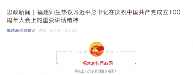 7月1日上午,庆祝中国共产党成立100周年大会在北京天安门广场隆重举行,中共中央总书记、国家主席、中央军委主席习近平发表重要讲话。福建师生认真学习领会习近平总书记在庆祝大会上的重要讲话精神,结合自身学习、生活、工作实际,畅谈感想体会。
