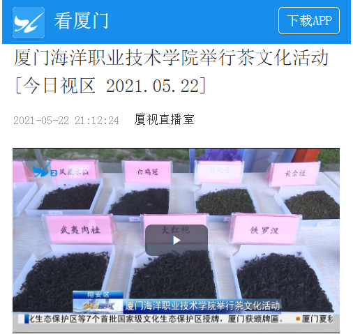 昨天(5月21日)是国际茶日。昨天上午,厦门海洋职业技术学院举行“茶文化进高校,庆祝国际茶日”暨无我茶会活动。