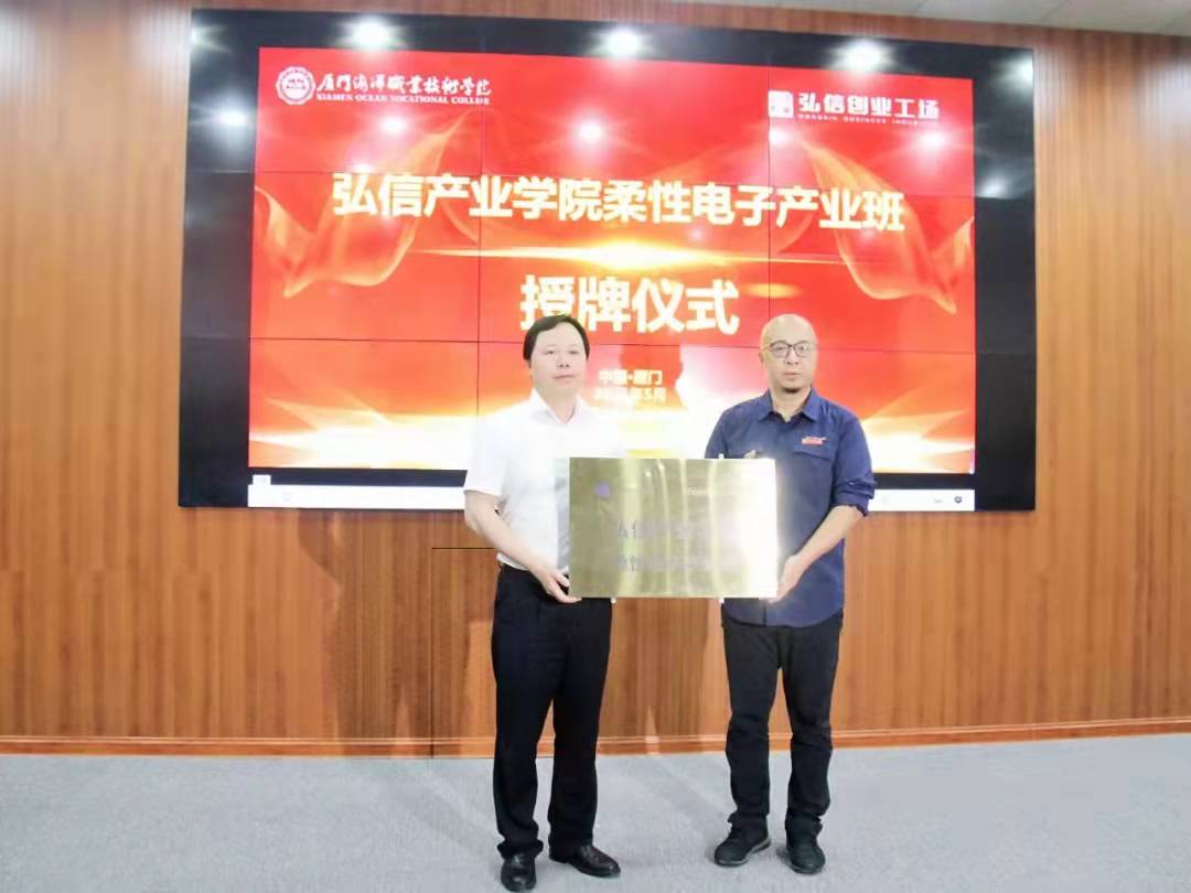 据了解,弘信电子集团是柔性电子领域的领军企业,是厦门市打造柔性电子千亿产业链的排头兵。此次与厦门海洋职业技术学院共建弘信产业学院,旨在培养一批柔性电子高层次技术技能人才,探索柔性电子技术在战略性海洋新兴产业应用。会后,厦门海洋职业技术学院党委书记