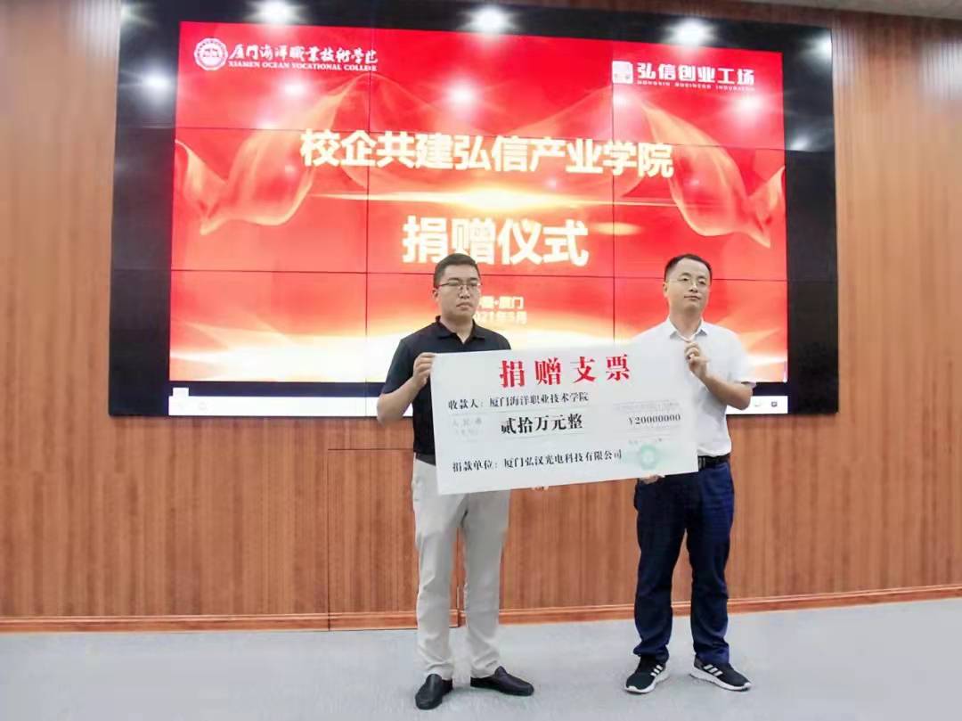 ▲厦门弘汉光电科技有限公司向厦门海洋职业技术学院捐赠20万元