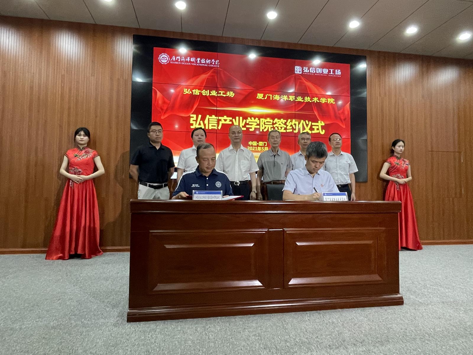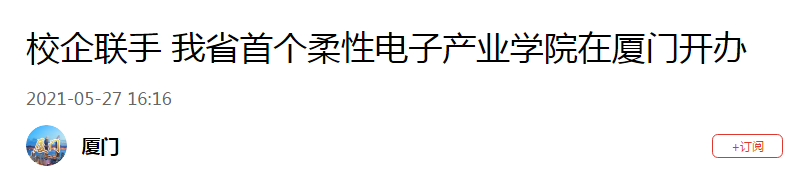 5月27日,厦门海洋职业技术学院与弘信创业工场联合创办的弘信产业学院揭牌,这是福建首个柔性电子产业学院。