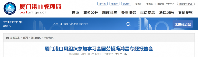 4月21日下午,厦门海洋职业技术学院邀请党的十八大代表、全国劳动模范、全国五一劳动奖章、中华技能大奖获得者冯鸿昌先生,为学院师生作《匠心铸梦 不负韶华》专题报告。厦门港口管理局机关党委、团委组织局属各厦门单位党员干部和青年一共参加学习。