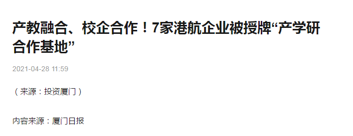 4月27日,厦门港口管理局与厦门海洋职业技术学院签署战略合作协议,学院为7家港航企业颁发“产学研合作基地”牌匾。多方将共同推进产教融合、校企合作,为厦门港航产业高质量发展培养更多高技能人才。