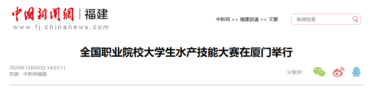 本届大赛由中国现代渔业职业教育集团主办,厦门海洋职业技术学院承办,厦门澳汤维尔生物科技有限公司协办,福建天马科技集团股份有限公司支持。(完)
