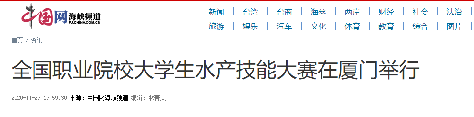 中国网海峡频道11月29日讯第二届全国职业院校大学生水产技能大赛22日至23日在厦门海洋职业技术学院举行。来自全国14所高职院校的42支参赛队125名选手同台竞技,开展水产职业技能大比拼。