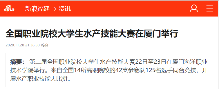 第二届全国职业院校大学生水产技能大赛22日至23日在厦门海洋职业技术学院举行。来自全国14所高职院校的42支参赛队125名选手同台竞技,开展水产职业技能大比拼。