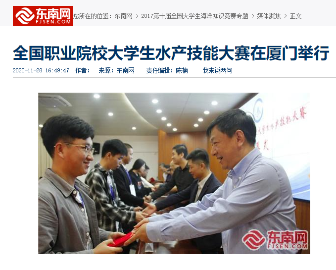 日前,第二届全国职业院校大学生水产技能大赛在厦门海洋职业技术学院举行。比赛持续两天,来自全国14所高职院校的42支参赛队125名选手同台竞技,开展水产职业技能大比拼。
