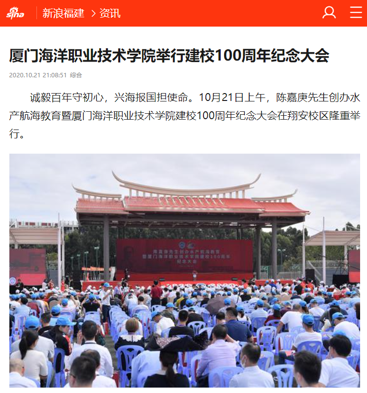 大会上,福建省教育厅、集美学校委员会、中国海洋大学、台湾海洋大学、厦门大学等单位及海内外友好人士等通过贺信等方式向陈嘉庚先生创办水产航海教育暨厦门海洋职业技术学院建校100周年送上祝贺。大会还设置线上直播,诚挚邀请未能亲临现场的各界宾朋、师生校友相聚云端,共庆百年华诞。