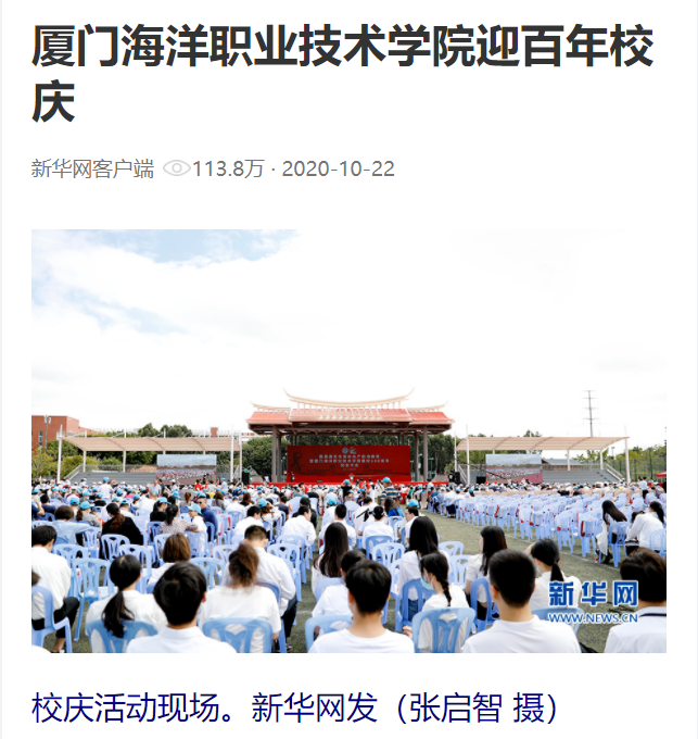 新华网厦门10月22日电(刘默涵)10月21日,厦门海洋职业技术学院举行陈嘉庚先生创办水产航海教育暨建校100周年纪念大会。