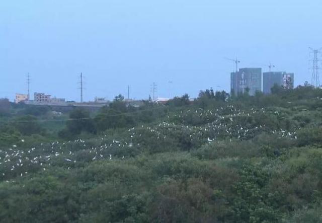 厦门海洋职业技术学院宣传科老师 陈锟大概我们是去年的三月份之后,陆陆续续在校园范围内,我们这边的湖边上吧。慢慢看到白鹭增多起来了。那到今年的9月份的时候,我们突然间发现我们办公楼对面这片山林里面,这个数量还真是不少。这处白鹭夜栖地不止栖息着小白鹭,还有牛背鹭、中白鹭、大白鹭、夜鹭、池鹭等。大约有四五百只,这些鸟儿们清晨早起觅食,傍晚归来休息,给树林带来了无限生机。