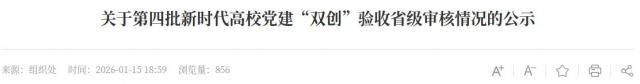 根据《教育部思想政治工作司关于开展第四批新时代高校党建“双创”验收与往届新时代高校党建“双创”复查确认工作的通知》要求,在建设单位对标自查总结的基础上,现将审核通过拟上报教育部验收的建议名单予以公示(详见附件)。公示期自2026年1月15日至1月21日。公示期内,如有异议,可来函来电反映情况。联系电话:0591-87091503,通讯地址:福州市鼓屏路162号省委教育工委组织处(邮编:350003)。
