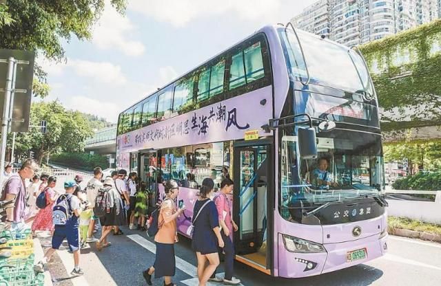 市民乘坐思明区文明实践主题巴士打卡体验实践带。(思明区委文明办供图)