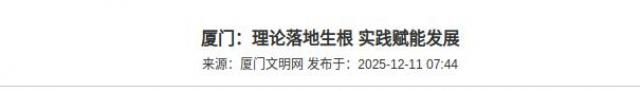 像这样的生动实践,在厦门已蔚然成风。集美区李林村新时代文明实践站将宣讲“搬”进村落,将村民请进策划端、决策端,鼓励他们提出想法、设计活动,激发人民群众的主人翁精神;思明区新时代文明实践中心在宣讲中设计“斗阵讲”互动环节,来自小区党支部、社区及新就业群体党支部的党员代表们踊跃发言,结合自身工作实践畅谈学习感悟,让全会精神在思想碰撞中进一步深化;海沧区致力让宣讲更生动,组建“流动乡音话初心”宣讲队,以带有泥土气息、行业特色的真实故事让党的理论走进群众心里……一次次立足实际、充满巧思的探索,不仅让党的创新理论“活”了起来,更在潜移默化中凝聚了社会共识,为厦门推进高质量发展注入了源源不断的精神动力。