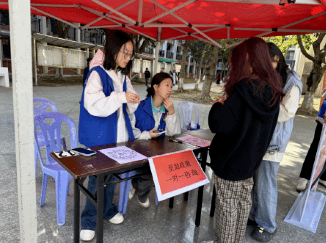 除了答题,本次活动特别设立了一对一咨询区。由经过培训的学生志愿者担任“政策解读员”,针对同学们在申请勤工助学、报销医疗补助、区分不同类别的奖助学金、使用国家助学贷款等过程中遇到的个性化、实操性问题,提供耐心细致的面对面解答。