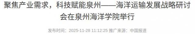 本次“海洋运输发展战略研讨会”作为第25届福建省科协年会的重要专项活动,不仅为海洋运输领域的专家学者、企业代表搭建了一个高层次、宽领域的学术交流平台,促进了行业内的知识共享、经验交流与技术合作,更通过主旨报告、校企签约、实地考察、专家咨询等环节,有效推动了科技创新资源与海洋运输产业需求的深度融合,为泉州乃至福建海洋运输产业的高质量发展注入了新的动能。研讨会的成功举办,对于提升泉州海洋运输产业的核心竞争力、推动福建“海洋强省”建设、助力海洋强国战略实施具有重要的意义。相信在各方的共同努力下,泉州海洋运输产业必将迎来更加广阔的发展前景,为区域经济社会高质量发展做出更大的贡献。(叶一)