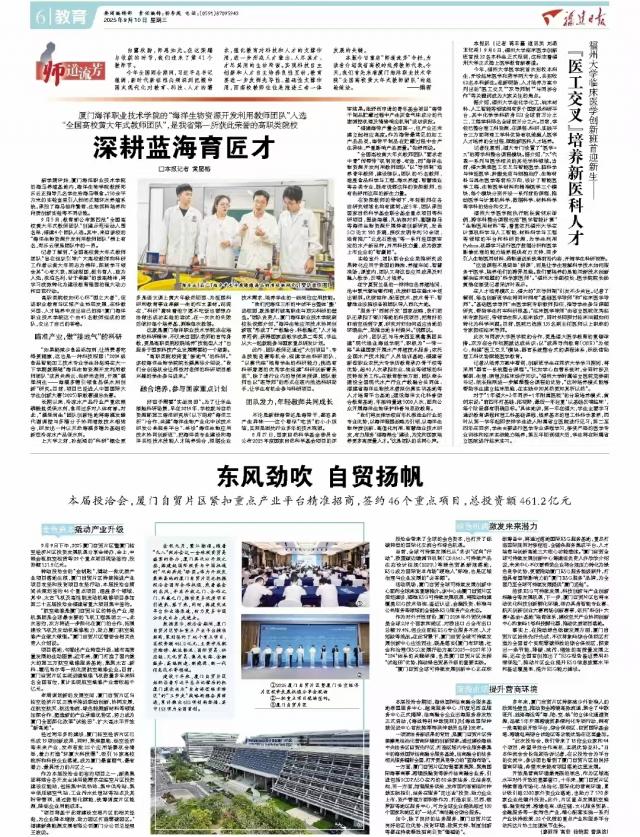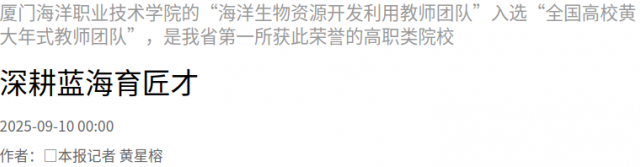 本版今日重启“师道流芳”专栏,为读者介绍我省高校的优秀教师代表。今天,我们首先来看厦门海洋职业技术学院“全国高校黄大年式教师团队”的经验做法。——编者
