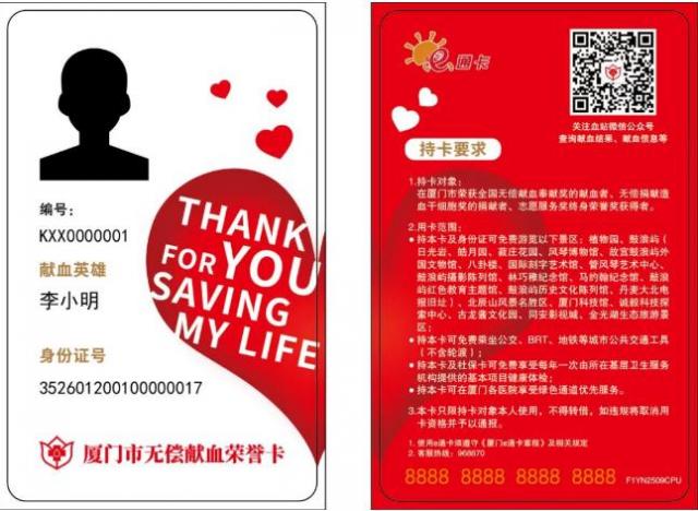 以上获奖者可携带身份证原件到易通卡客户服务网点办理“厦门市无偿献血荣誉卡”,现场办理即刻取卡,即时生效使用。