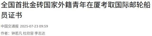7月18日下午,14名来自金砖国家和共建“一带一路”国家外籍国际邮轮船员培训班的外籍青年顺利领取了由厦门海事局签发的国际邮轮船员证书,标志着全国首批金砖国家国际邮轮船员培训发证工作圆满完成。