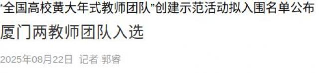 据悉,创建“全国高校黄大年式教师团队”,旨在大力弘扬黄大年同志“心有大我、至诚报国”的崇高品格,引导广大教师在加快建设教育强国的新征程中展现更大担当作为。经自主申报、逐级遴选、专家评审等环节严格把关,共有200个团队入围此次评选。除厦门的两个外,福建还有来自福建农林大学和福建中医药大学的两个教师团队入选。