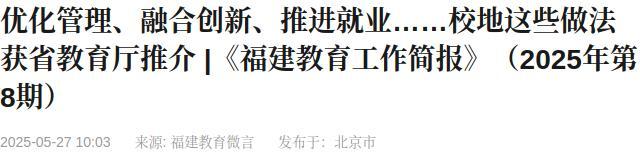 我省代表队在第二届全国大学生职业规划大赛中荣获4金4银16铜,金奖数较首届国赛实现翻番,工作经验做法在全国高校生涯教育与就业指导创新实践成果展上展示。一是积极组织发动,参赛规模再创新高。完善“省—校—院”三级联动机制,发动全省大学生积极参与,报名人数突破31万,较首届增长50%。其中,6所高校报名人数超1万。二是创新赛训模式,提升职业规划能力。总结省级大赛经验,创新赛事方式,构建“训赛结合”选拔体系。组织“就业创业指导教师”专题培训,举办大赛训练营,邀请资深专家为75名省赛优秀选手提供一对一辅导,帮助选手优化职业规划方案,为参加国赛提供助力。三是突出校企合作,助力高校毕业生就业。大赛期间,省内8家重点企业积极参与国赛现场招聘活动,与全国参赛选手进行供需对接,为促进高校毕业生高质量充分就业贡献福建力量。